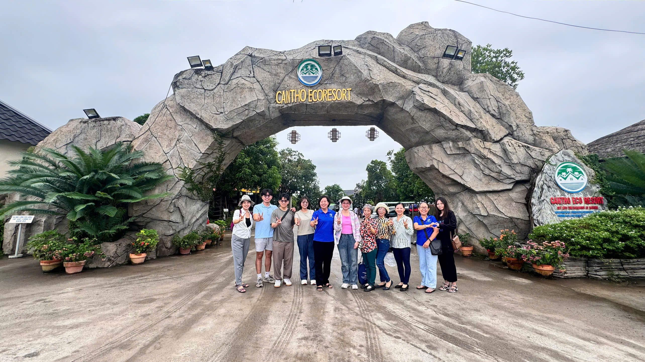 (Các Thầy cô chụp ảnh lưu niệm trước cổng Cần Thơ Eco Resort)