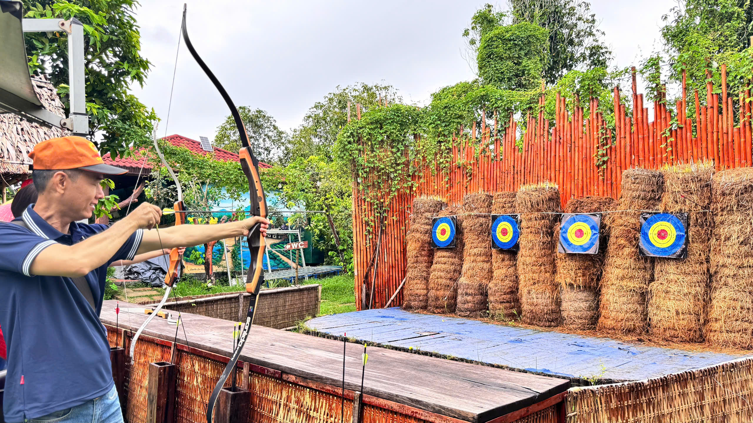 (ThS. Huỳnh Trọng Nghĩa trải nghiệm trò chơi bắn cung)