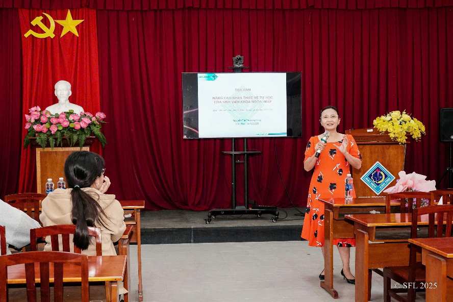Nhằm giúp sinh viên phát triển năng lực tự học – một trong những yếu tố quan trọng để thành công trong môi trường học tập hiện đại và hội nhập quốc tế. Sáng ngày 07 tháng 12 năm 2025, Khoa Ngoại ngữ tổ chức buổi Toạ đàm “Nâng cao kỹ năng tự học của sinh viên Khoa Ngoại ngữ” tại Hội trường Khoa.