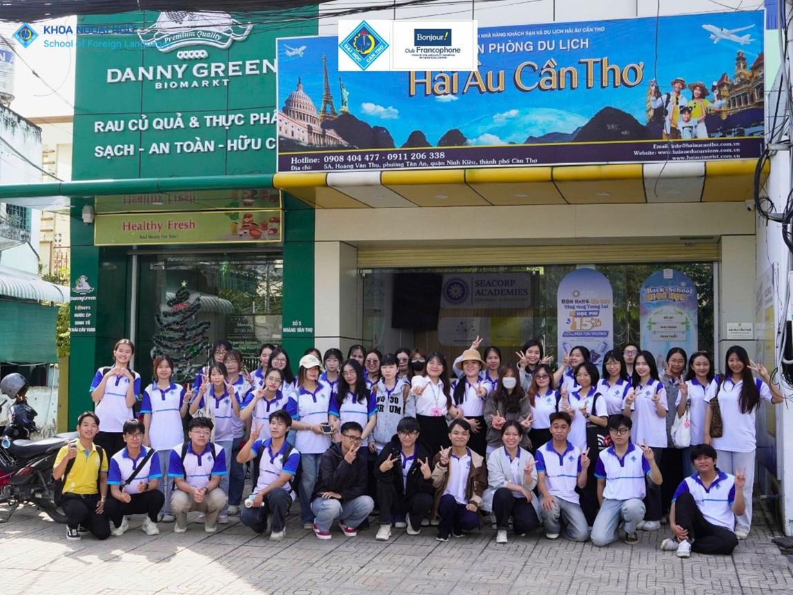 Nhằm tăng cường gắn kết giữa đào tạo với thực tiễn, đồng thời hỗ trợ sinh viên định hướng nghề nghiệp theo hướng ứng dụng và hội nhập, ngày 26/12/2025, Bộ môn Ngôn ngữ và văn hóa Pháp – Khoa Ngoại ngữ, Đại học Cần Thơ đã phối hợp cùng Công ty TNHH Nhà hàng Khách sạn và Du lịch Hải Âu Cần Thơ, HaiAu Educursions và Seacorp Academies tổ chức thành công chương trình tham quan – học tập thực tế doanh nghiệp dành cho hơn 40 sinh viên ngành Ngôn ngữ Pháp.