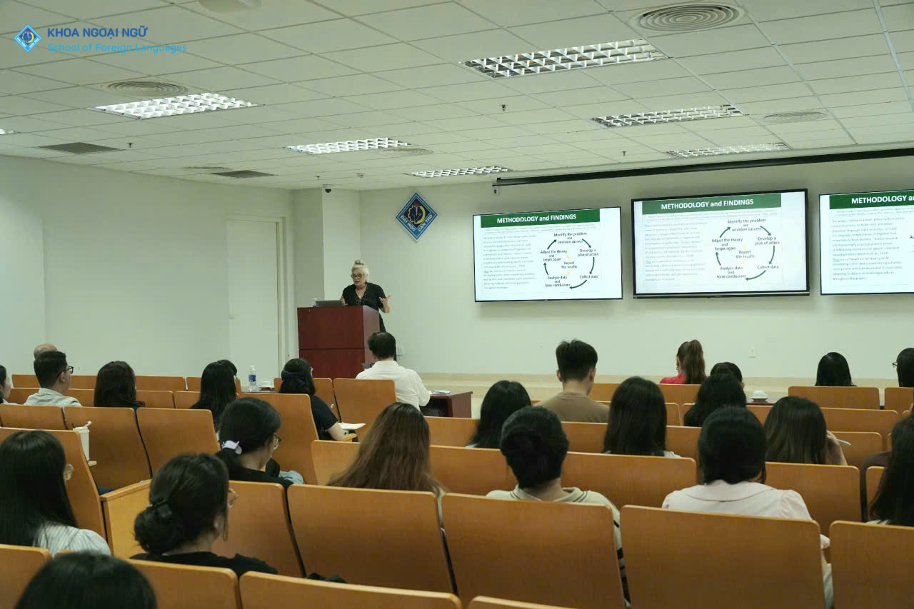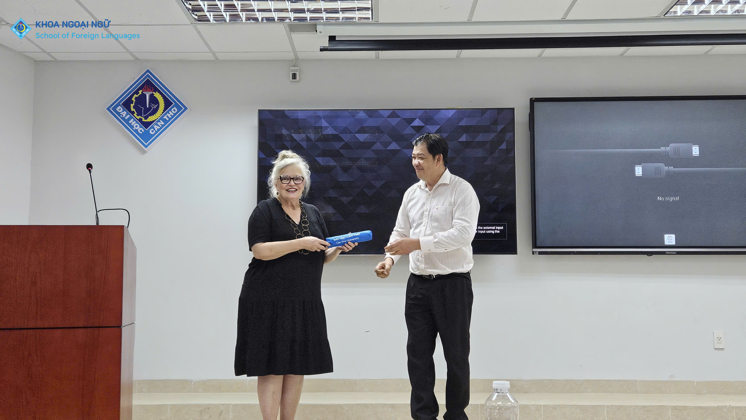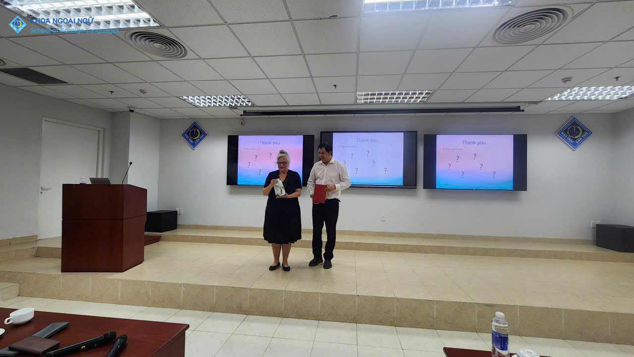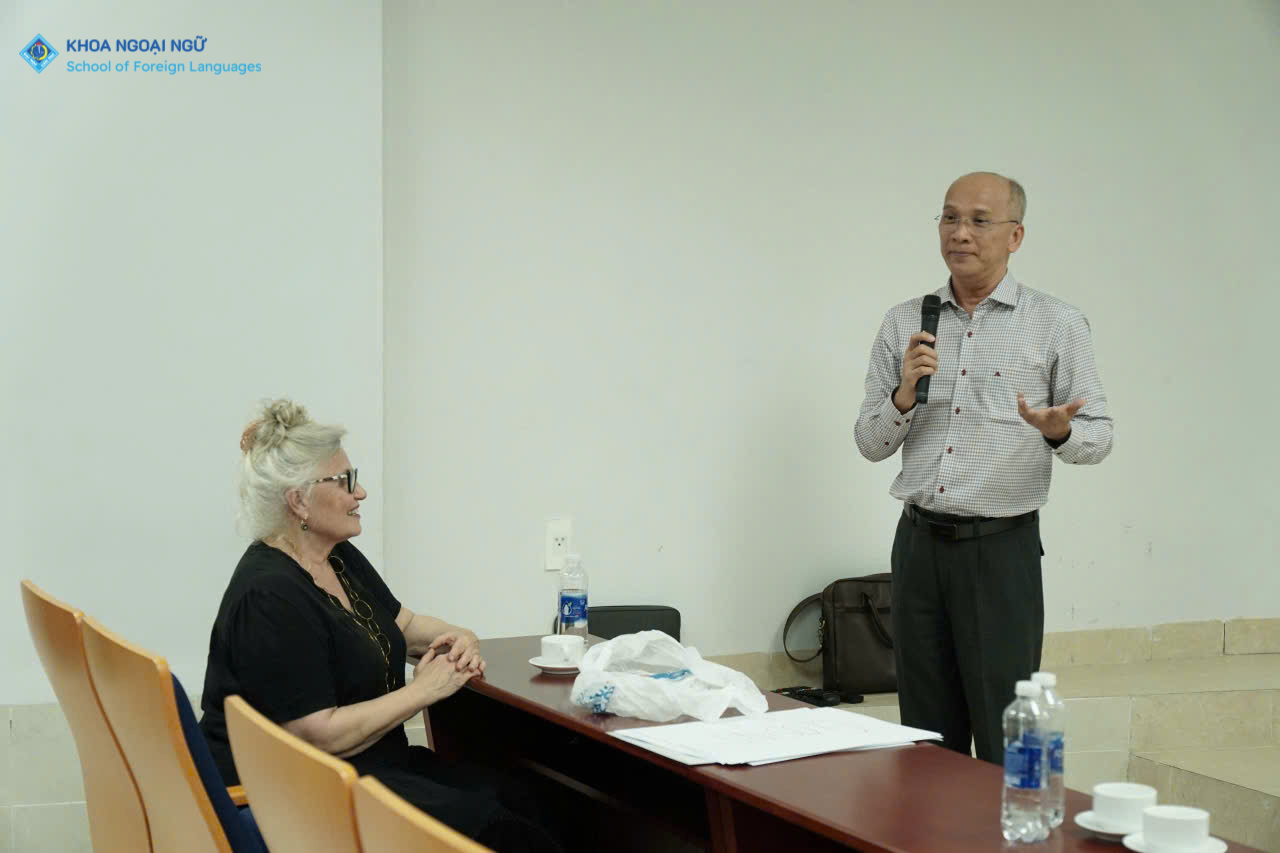 Ngày 14/01/2026, đại diện BCN Khoa Ngoại ngữ, PGS.TS Trịnh Quốc Lập, Trưởng Khoa, đã đón tiếp Giáo sư OLENKA BILASH từ trường ĐH Alberta - Canada đến trao đổi học thuật với Giảng viên và Học viên Cao học ngành LLvà PPDH bộ môn tiếng Anh và ngành Ngôn ngữ Anh.