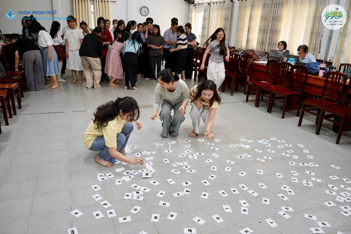 Các học viên trực tiếp tham gia trải nghiệm và phân tích các trò chơi ngôn ngữ dưới sự hướng dẫn của chuyên gia.